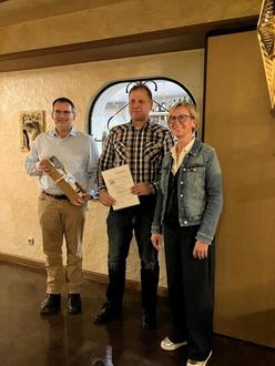 Daraufhin dankte Bürgermeisterin Marion Frohnapfel und der Vorsitzende der Gemeindevertretung Marcus Fink dem ehemaligen Gemeindejugendfeuerwehrwart Thorsten Hohmann für sein langjähriges unermüdliches Engagement und überreichten ihm die Verleihungsurkunde sowie ein kleines Präsent. Marion Frohnapfel hob hervor, dass er mit seinem Tun ein Vorbild für viele junge Menschen sei, die sich für das Feuerwehrwesen engagieren.