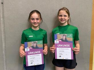 Das Bild zeigt die beiden erfolgreichen TTC-Mädchen nach der Siegerehrung in Schotten; links Lina Pappert, rechts Leona Emkes.