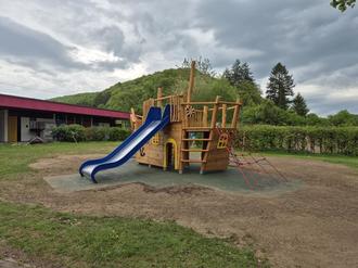 Hier können sich die kleinen Gäste austoben. Die Mitarbeiter des Bauhofs der Gemeinde Nüsttal haben in den vergangenen Tagen mit Hochdruck daran gearbeitet, dass das Piratenschiff zum Saisonstart in Betrieb genommen werden kann.