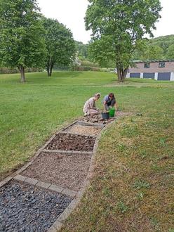 Die fleißigen Helfer des Fördervereins beim Aufarbeiten des Barfußpfads