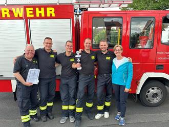 Unser Titelbild zeigt die Gewinner der diesjährigen Feuerwehrleistungsübungen auf Kreisebene, die Mannschaft Nüsttal-Hofaschenbach (v.l.n.r. Bernd Schädel, GBI Stefan Hohmann, Alexander Wenzel, Paul Weber, Marius Weber) zusammen mit der Bürgermeisterin. Die Feuerwehr Nüsttal- Hofaschenbach erzielte 100 Prozent und landete auf Platz eins. Die Feuerwehr Nüsttal- Gotthards 2 erreichte den 5. Platz. Beide Mannschaften dürfen sich nun beim Bezirksentscheid unter Beweis stellen.
