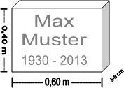 | a. | stehende Grabmale: | Höhe: 0,60 m, Breite: 0,40 m |