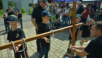 Die Kinderfeuerwehr freute sich besonders über den Drachen Grisu, den KBM Schwendner mitbrachte