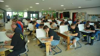 Konzentration in der Aula der Grundschule Nüsttal beim Beantworten des Fragebogens