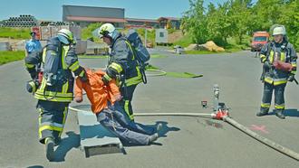 Die Wettkampfmannschaft Nüsttal - Hofaschenbach 2 beim praktischen Prüfungsteil