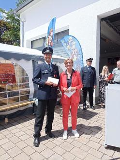 Wehrführer FFW Hofaschenbach Paul Weber und Bürgermeisterin Marion Frohnapfel