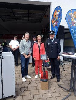Die SV-Sparkassenversicherung nutzte die Festlichkeit und überreichte der Bürgermeisterin und dem GBI ein Beleuchtungssystem für die Feuerwehren aus Nüsttal.