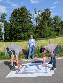 Herr Thomas Schneider, Pressesprecher vom Kreisbauernverband Fulda-Hünfeld e. V., war auf Nachfrage sofort bereit, die Piktogramme zu erneuern. Lange mussten wir auf entsprechend gutes Wetter warten, aber vergangene Woche war es endlich soweit. Herr Schneider hat in Zusammenarbeit mit David Weber, Mitarbeiter Bauhof, insgesamt 16 Piktogramme aufgebracht.