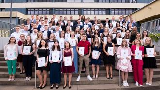 Beim Ergebnis hätten 31 von 78 Abiturientinnen und Abiturienten einen Notendurchschnitt von besser als 2,0, das seien fast 40% des gesamten Jahrgangs, und die Durchschnittsnote liege bei 2,13. Das sei der beste Notendurchschnitt, den jemals ein Jahrgang an der Wigbertschule erreicht habe.