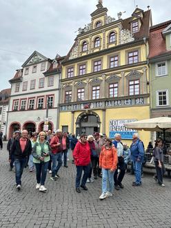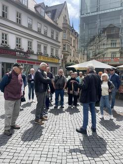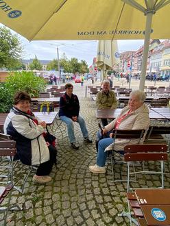 Gegen 14.00 Uhr unternahmen wir eine Führung durch Erfurt –aufgeteilt in 3 Gruppen- die ca. 1 Stunde dauerte und allen Teilnehmer*innen einen Eindruck der Altstadt, über den Dom St. Marien, alte Synagoge und die Krämerbrücke vermittelte. Es waren 2 Führungen zu Fuß und eine weitere Führung mit dem Erfurter Altstadt-Express. Zum Abschluss der Führungen gab es noch ein ganz besonderes Schmankerl für jede/n Teilnehmer/in- ein Fläschchen Thüringer Kloßbrühe.