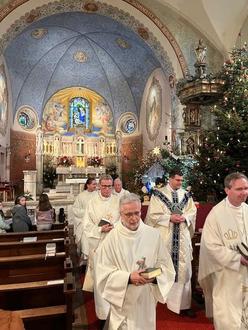 Mit Wirkung vom 01.01.2025 geht Pfr. Paul Gerhard nach über 7-jähriger Tätigkeit in der Pfarrei Schwarzbach „St. Maria vom Berge Karmel“ in den Ruhestand. Die Pfarrei verabschiedete sich von ihrem Pfarrer am 29.12.2024, dem letzten Sonntag des Jahres und letzten Sonntag als eigenständige Pfarrei, im Rahmen eines feierlichen Gottesdienstes. Der Gottesdienst begann mit dem festlichen Einzug in die Kirche, bestehend aus allen Ministranten der Pfarrei, den beiden Diakonen Manfred Oeste und Ludwig Wagner, den Pfarrern des Personalverbund „St. Margareta Vorderrhön“ Pfr. Michael Heidel, Pfr. Piotr Kownacki und Pfr. Andreas Matthäi sowie von Pfarrer Paul Gerhard.