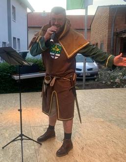 Nun berichtete Ulrich Richter als „Haselsteiner Raubritter“ aus Sicht des Ortsteiles Haselstein über die Auswirkungen des Zusammenschlusses auf sein Dorf.
