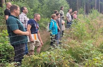 Revierleiterin Anabel Wolf, die Forstamtsleiter Sebastian Keidel vom Forstamt Burghaun mitgebracht hatte, erläuterte den Ausschussmitgliedern den Zustand der Kultur.