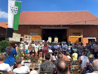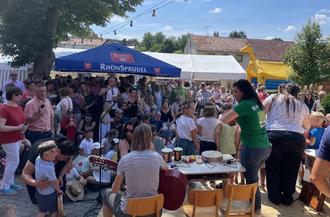 Die Schulanfänger des Kindergartens St. Raphael aus Hofaschenbach boten ein Lied mit Unterstützung der Eltern dar. Die Kita St. Raphael ist weit älter als die Gemeinde Nüsttal. Die Gemeinde investiert derzeit 1,2 Mio Euro in die Erweiterung und den Umbau des Gebäudes und des Außenbereiches.