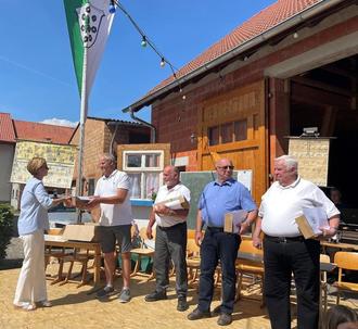 Die Wandergruppe aus Haselstein hatte wohl den weitesten Weg zur Dorfscheune.