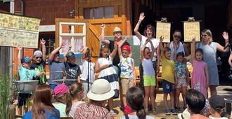Die Grundschule Nüsttal, die in diesem Jahre selbst 50jähriges Jubiläum gefeiert hatte, führte ihr Jubiläumstheaterstück auf. Grundschullehrer Dieter Nowak hatte das Stück mit den Kindern eingeübt und mit Unterstützung von Sabrina Hess und Hausmeister Thomas Kuhnert konnte es trotz Ferienzeit dem begeisterten Publikum dargeboten werden.