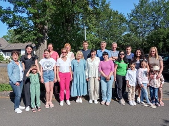 Samstag, 3. Juni 2023 - Zu einem beiderseitigen Kennenlernen hatte die Gemeinde Nüsttal im Rahmen der Initiative Gemeinsam aktiv die zugewiesenen ukrainischen Mitmenschen in den Mehrgenerationen-raum ins Bürgerhaus Hofaschenbach eingeladen. Knapp 30 Personen haben sich zusammengefunden und bei Kaffee und Kuchen einen schönen Nachmittag erlebt. Isolde Sauer und Zhanna Lewandowsky aus Gotthards sind die direkten Ansprechpartnerinnen für die Geflüchteten. Sie sind behilflich bei Übersetzung und Fahrdienst zu Behörden oder Ärzten. Zusammen mit Koordinatorin Anja Biedenbach haben sie den Nachmittag organisiert. Zhanna Lewandowsky stammt selbst aus der Ukraine und wohnt seit vielen Jahren in Nüsttal. Es ist ihr ein Herzensanliegen ihre Landsleute bei der Integration zu unterstützen. Bürgermeisterin Marion Frohnapfel konnte ihr im Rahmen dieses Zusammentreffens die Anerkennung für ihre Aktivitäten aussprechen und ein Präsent überreichen.