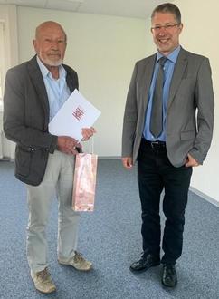 Der Amtsgerichtsdirektor überreichte Gregor Hohmann die Entlassungsurkunde und ein kleines Präsent.