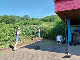Die fleißigen Helfer kümmern sich um die Außenanlagen Foto: Gemeinde Nüsttal