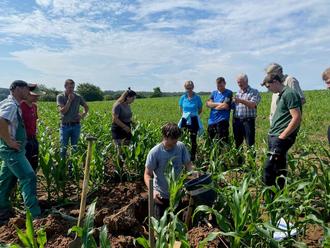 Nach einem heftigen Starkregenereignis im August des vergangenen Jahres wurde von mehreren Ackerflächen im Ortsteil Rimmels Bodenmaterial in den Ort abgeschwemmt. Daraufhin wurden vom Bewirtschafter der Flächen mit Unterstützung des Ingenieurbüros Schnittstelle Boden GmbH Erosionsschutzstreifen angelegt, um derartige Ereignisse in Zukunft zu verhindern. Die Erosionsschutzmaßnahmen wurden am 27.06. Vertreterinnen der Gemeinde Nüsttal, des Landkreises und interessierten Landwirten vorgestellt und diskutiert.