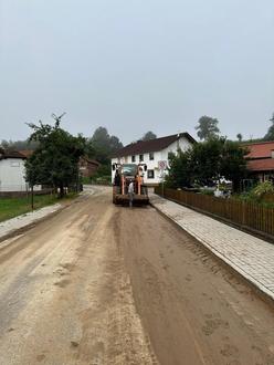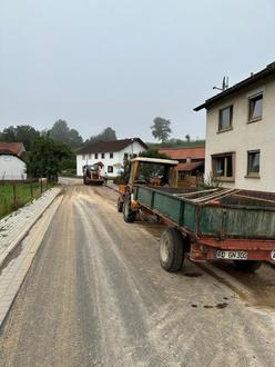 Betroffen waren vor allem die Allmuser Straße- Ortseingang bis Ortsausgang und der Kirchweg. Zunächst musste die Schlammschicht von den Straßen mühevoll abgetragen werden.