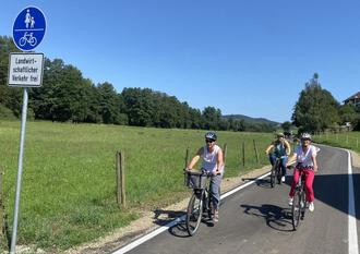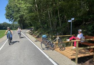 Beim Radwegebau wurden Infrastrukturmaßnahmen geschaffen, wie die Bereitstellung von Sitzgelegenheiten.