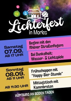 Seit vielen Jahren veranstalten die Morleser ihr Lichterfest. Doch zum ersten Mal findet es dieses Jahr nicht im August, sondern am 7. und 8. September statt. Und noch etwas Neues: Die Licht- und Wasserspiele gibt es bereits Samstagabend, nicht am Sonntag. Doch alles der Reihe nach.