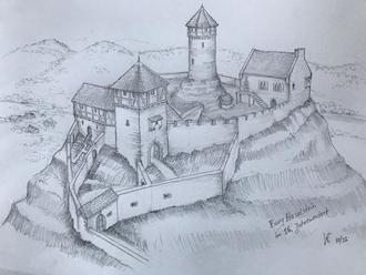 Burg Haselstein 16. Jh. (Skizze von Wolfgang Scharf nach Angaben Achim Zeune)