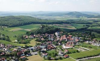 Dorf und Ruine Haselstein (Drohnenfoto, Mai 2019)