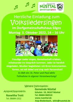 Von Freitag, den 30. September, bis Montag, den 3. Oktober 2022, heißt es auf dem Festplatz im kleinen Dörfchen Silges, einem Ortsteil von Nüsttal, wieder „Ba hot de Kermes? Mei hon de Kermes! Be is de Kermes? Schö is de Kermes! De Kermes, de lebe hoch!“ Dann wird vier Tage lang die Kirmes im beheizten Festzelt mit Fußboden gefeiert. Bereits seit 40. Jahren feiert die „Kirmesgesellschaft Silges/ Rimmels“ ihre traditionelle und allseits beliebte Zeltkirmes.