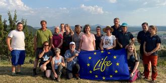 Über das Ergebnis zur Erhaltung und Erweiterung der Kalkmagerrasen in den Gemarkungen von Hof- und Mittelaschenbach informierte sich vergangene Woche eine hochrangige Delegation aus VertreterInnen der Europäischen Kommission, des Hessischen Umweltministeriums, des Regierungspräsidiums Kassel sowie der Agentur ELMEN, die im Auftrag der EU das Life-Projekt evaluiert.