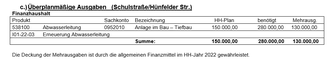Die nachstehenden überplanmäßigen Ausgaben in Höhe von 130.000 € bei dem Produkt 538100 wurden der Gemeindevertretung zur Beschlussfassung vorgelegt.