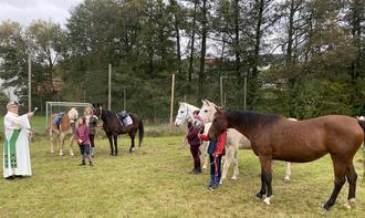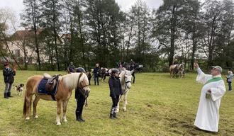 Anschließend fand die traditionelle Pferde- und Tiersegnung auf der Wiese neben dem Spielplatz im Nässegrund durch Diakon Helmut Kimmling statt.
