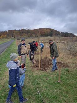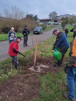 Wie bereits im Frühsommer angekündigt, wurden jetzt mit vereinten Kräften am Samstag den 25. Oktober 2025 66 Bäume gepflanzt. 33 im privaten Bereich und 33 in der Gemarkung.