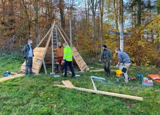 Durch fleißige, engagierte und spendende Eltern (auch Gemeindevertretung) konnten sowohl die Materialien besorgt, als auch der Aufbau organisiert und durchgeführt werden. Die Tipi-Aufbautruppe hatte sich an einem Samstagmittag im November getroffen und es tatsächlich vor Einbruch der Dunkelheit geschafft, das neue Tipi zu errichten. Bei Getränken und Verpflegung war die Motivation groß und eine gute Stimmung vor Ort.