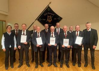 Auszeichnungen für 50 Jahre aktives Singen erhielten Günter Aha und Winfried Menz. Ehrungen für 40 Jahre aktives Singen wurden Werner Hau, Michael Aha, Herbert Rauschenberg, Arnold Will und Joachim Aha zuteil. Eine weitere Auszeichnung erhielt Thomas Vieth für 25 Jahre aktives Singen.