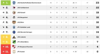 Die Tabelle der A-Jugend Gruppenliga in der Winterpause: