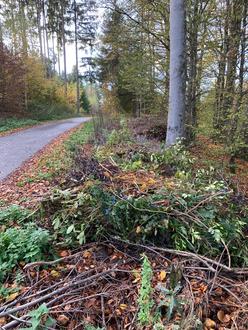 Am Nüsttalradweg zwischen Morles und Gotthards wurden pflanzliche Abfälle aus einem Hausgarten direkt am Wegesrand widerrechtlich abgelagert.