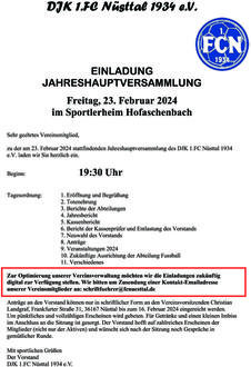 zu der am 23. Februar 2024 stattfindenden Jahreshauptversammlung des DJK 1.FC Nüsttal 1934 e.V. laden wir Sie herzlich ein.