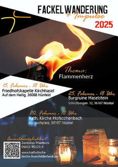 | Hofaschenbach Am Kirchplatz | 18:00 Uhr | Fackelwanderung mit Impulsen "Flammenherz" |