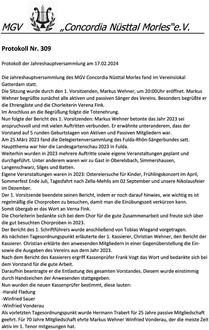Die Jahreshauptversammlung des MGV Concordia Nüsttal Morles fand im Vereinslokal Gatterdam statt.
