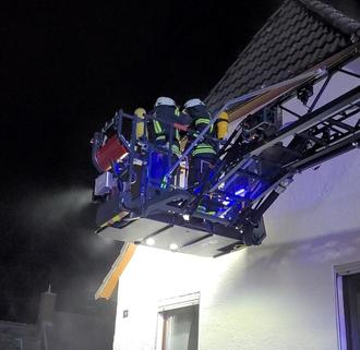Die kurz darauf ankommende Stützpunktfeuerwehr aus Edenkoben, unter der Einsatzleitung von Frederic Schneider, leitete die weitere Menschenrettung aus dem Obergeschoss ein. Eine Person, die am Fenster Richtung Straße um Hilfe ersuchte, wurde mittels der Drehleiter in Sicherheit gebracht. Eine zusätzliche Herausforderung war es, eine weitere, in einem Zimmer im Obergeschoss befindliche nicht gehfähige Person zu transportieren. Diese musste im Anschluss durch die Edenkobener Einsatzkräfte, über den dann mit einer speziellen Krankentragenlagerung ausgerüsteten Rettungskorb der Drehleiter, gerettet werden.