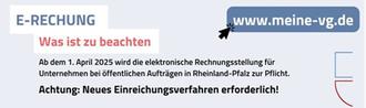Hintergrund: Zum 1. April 2025 tritt in Rheinland-Pfalz die Verpflichtung zur elektronischen Rechnungsstellung (E-Rechnung) für öffentliche Aufträge und Konzessionen in Kraft. Im Gegensatz zum Geschäftsverkehr in der freien Wirtschaft greift bei der Rechnungstellung an Behörden dieser Stichtag.