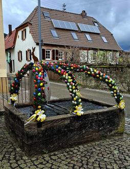 Als sichtbares Zeichen darauf ist auch unser Dorf in diesen Tagen wieder österlich geschmückt. An vielen Stellen im Ort sind die von unser Kita St. Christophorus bemalten Eier aufgestellt. Auch unser Dorfbrunnen ist rechtzeitig zum Osterfest als Osterbrunnen geschmückt.