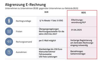 Hintergrund: Zum 1. April 2025 trat in Rheinland-Pfalz die Verpflichtung zur elektronischen Rechnungsstellung (E-Rechnung) für öffentliche Aufträge und Konzessionen in Kraft. Im Gegensatz zum Geschäftsverkehr in der freien Wirtschaft greift bei der Rechnungstellung an Behörden dieser Stichtag.