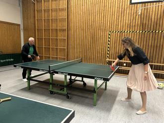 Gemeinsam mit Monique und Sven Adam sorgte die B-Mannschaft für die Bewirtung der Gäste. Zum Dank überreichte Bürgermeister Daniel Salm eine Spende an den Verein. Die bereit stehenden kleinen Tore und Tischtennisplatten luden zu kleinen Matchs ein.