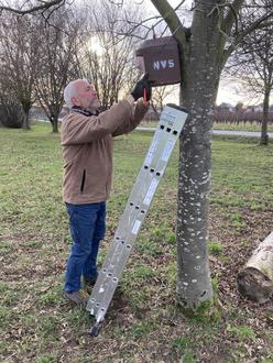 Auf dem Gelände des Klima-Arboretum haben der Naturschutzverband Südpfalz (NVS) mit tatkräftiger Unterstützung von Uwe Hädicke, der Mitglied in der Ortsgruppe Billigheim-Ingenheim ist, eine Nistkastensammlung von 7 Stück für vielfältige Vogelarten und Kobel aufgehängt. Sie werden sich jetzt Fragen was Flemlingen mit Billigheim-Ingenheim zu tun hat? Ganz einfach, wenn alte Schulfreunde ins Gespräch kommen und Ideen sammeln, kommt sowas dabei heraus.