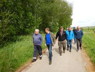 Die öffentlichen Ortsbegehungen gehen weiter: Am Mittwoch, 10. Mai waren die Gemeinden Großfischlingen und Edesheim an der Reihe. Vor Ort angeschaut wurden Stellen, die beim Workshop Thema waren, aber auch noch nicht betrachtete Problemstellen – dabei konnten die Anwohner vorliegende Probleme erläutern. Mit dabei Bürgermeister Daniel Salm, Erster Beigeordneter Eberhard Frankmann, Bernhard Bäcker vom Fachbereich Bauen und Umwelt der Verbandsgemeindeverwaltung Edenkoben sowie Daniel Raudonat vom Ingenieurbüro igr.