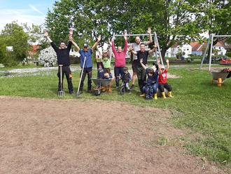Zusätzlich reinigten Eltern und Kinder die Sandflächen um die Schaukeln, so dass alle Besucher wieder sicher auf dem Spielplatz toben können. Ein herzliches Dankeschön allen fleißigen großen und kleinen Helfern.