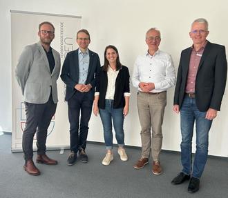 Bürgermeister Daniel Salm, der Erste Beigeordnete Eberhard Frankmann, Beigeordneter Daniel Poth und Büroleiter Jörg Nicklis hießen die neuen Mitarbeiter der Verbandsgemeinde Edenkoben herzlich willkommen.